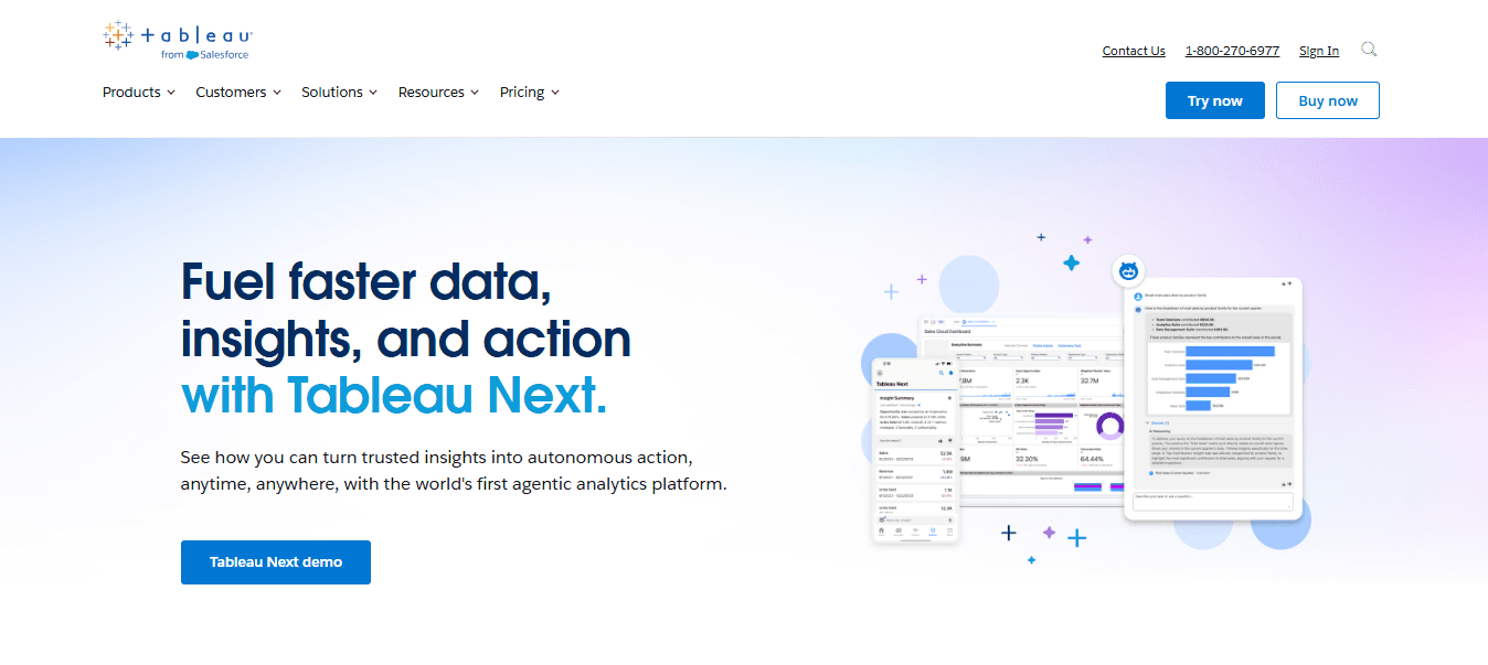 Tableau renders complex ecommerce datasets into interactive dashboards and supports predictive modeling and natural language queries.