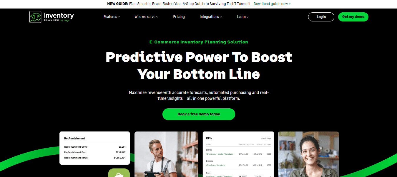 Inventory Planner predicts demand and builds purchase plans based on historical sales, seasonality, and lead times to limit stockouts and overstocks.